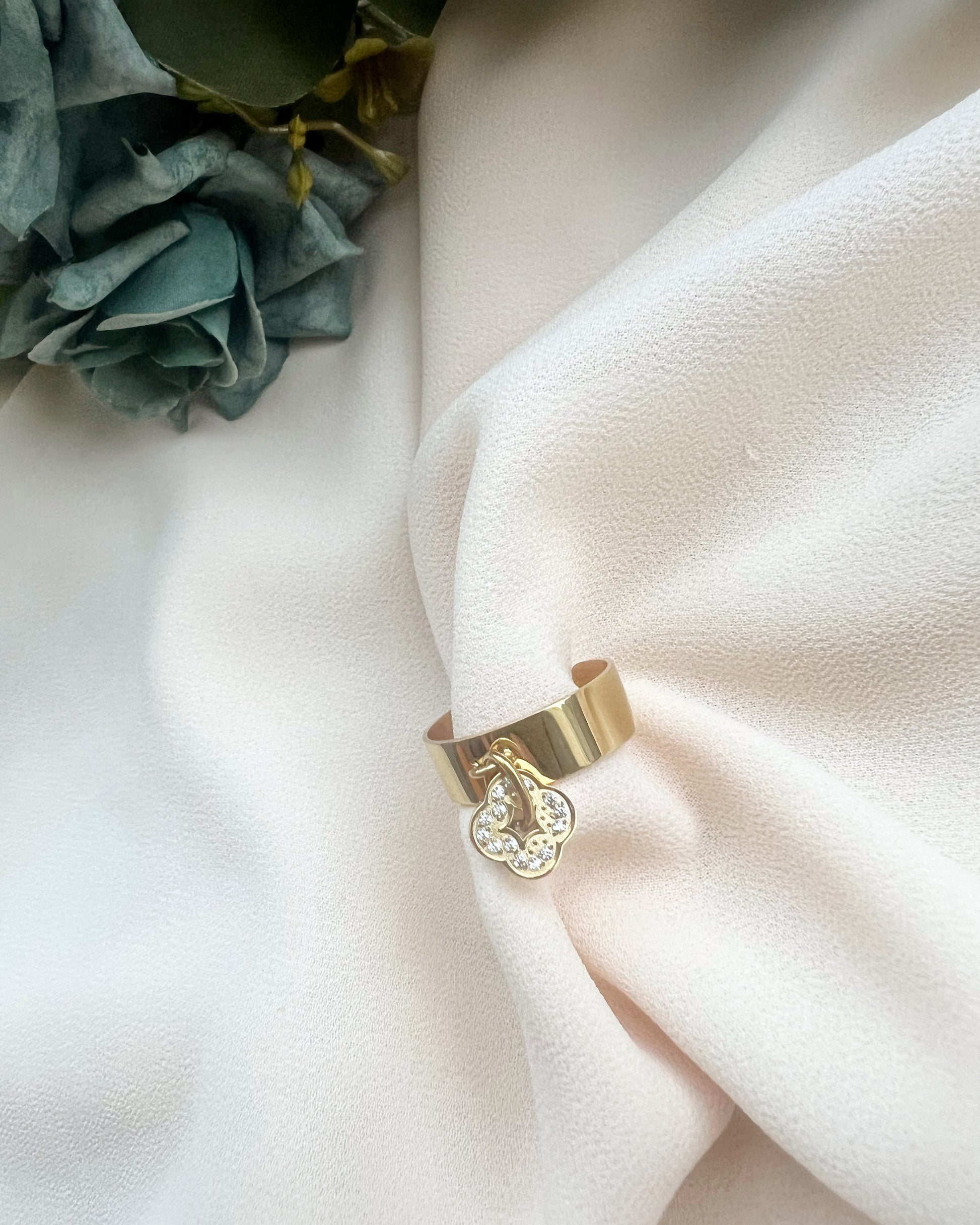 La bague RAYA est une bague breloque avec un trèfles composé de jolie zirconium.