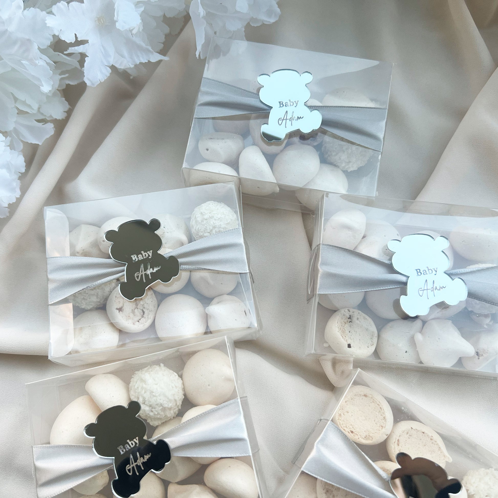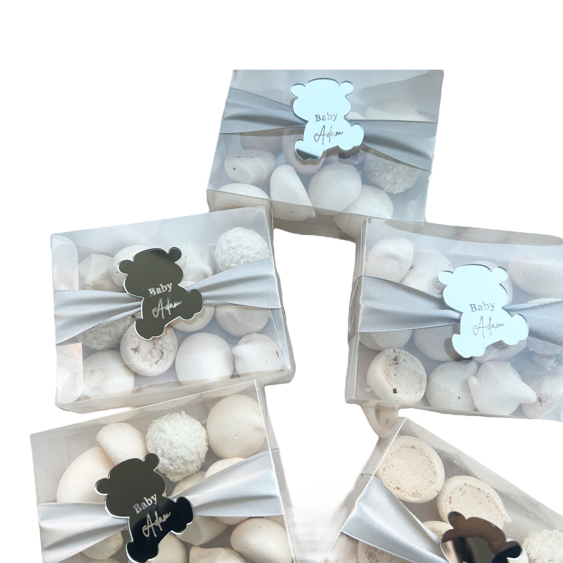 Boite transparente nounours( prénom et ruban à personnaliser )