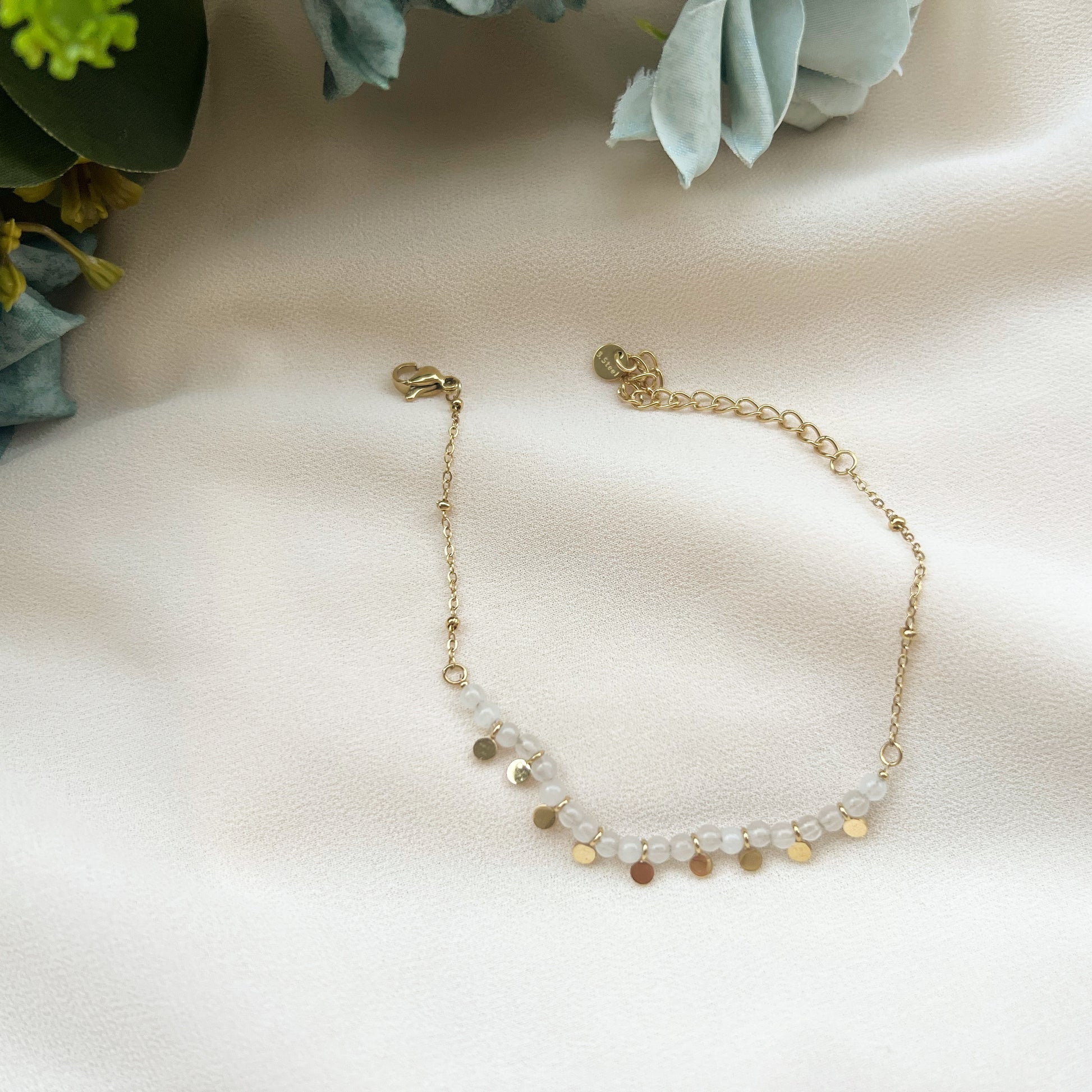 Ce bracelet ANAE est un accessoire tendance avec des perle blanche. Fabriqué avec des matériaux de qualité.