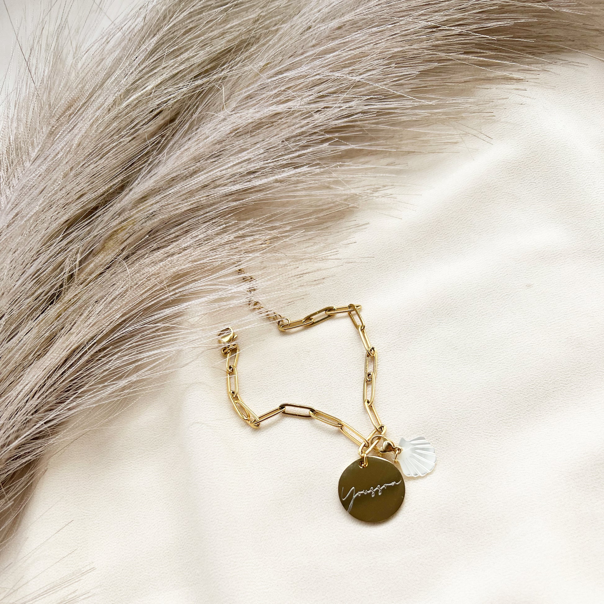Ce bracelet charmant et son coquillage nacré complète parfaitement toutes vos tenues.