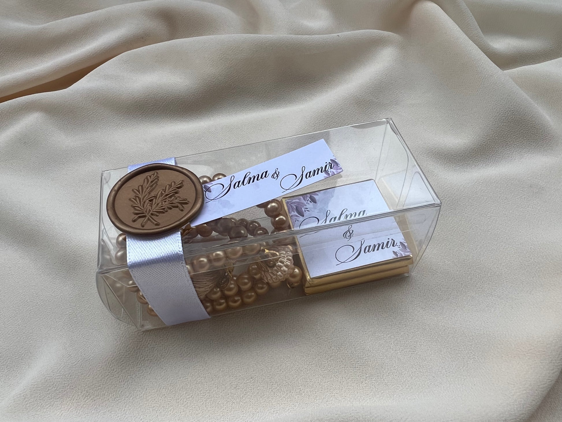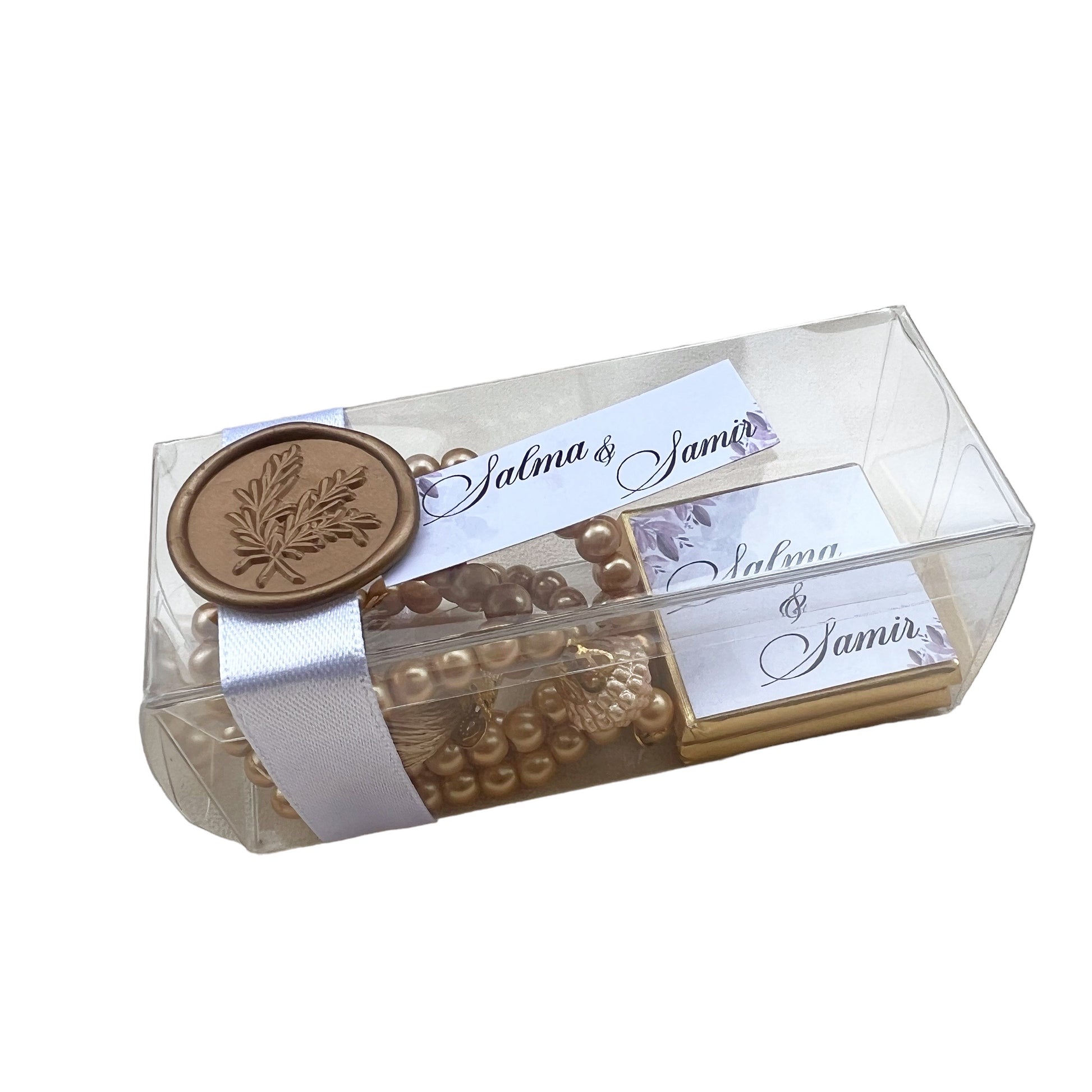 Offrez à vos invités une petite attention avec ce cadeau spécial : un chapelet accompagné de délicieux chocolats. Un souvenir à la fois spirituel et gourmand pour célébrer votre événement. Faites plaisir à vos proches avec ce présent unique et significatif.
