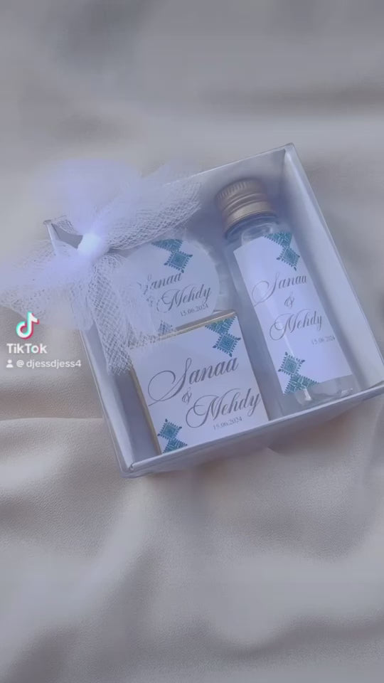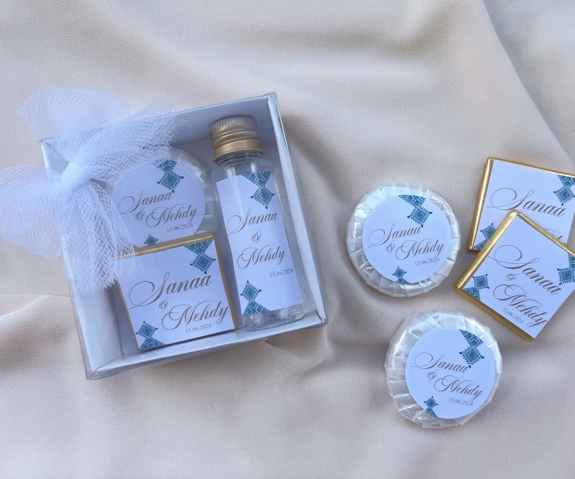 Offrez à vos invités un cadeau mémorable avec notre ensemble Cadeaux Invités savon, Chocolat et eau de Cologne. Le savon et l'eau de Cologne offrent une expérience luxueuse et rafraîchissante, tandis que le chocolat ajoute une touche gourmande. Parfait pour remercier vos invités avec élégance.