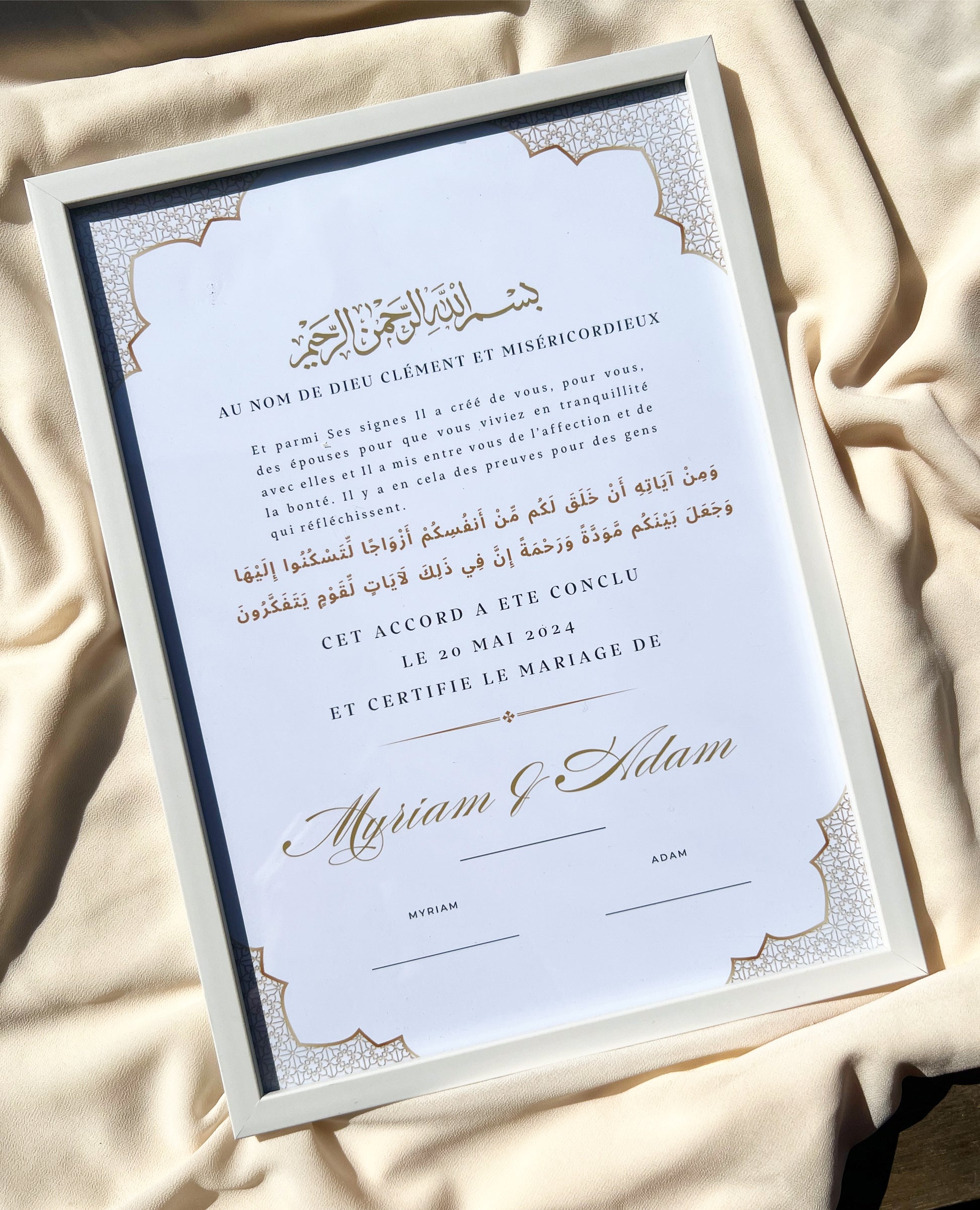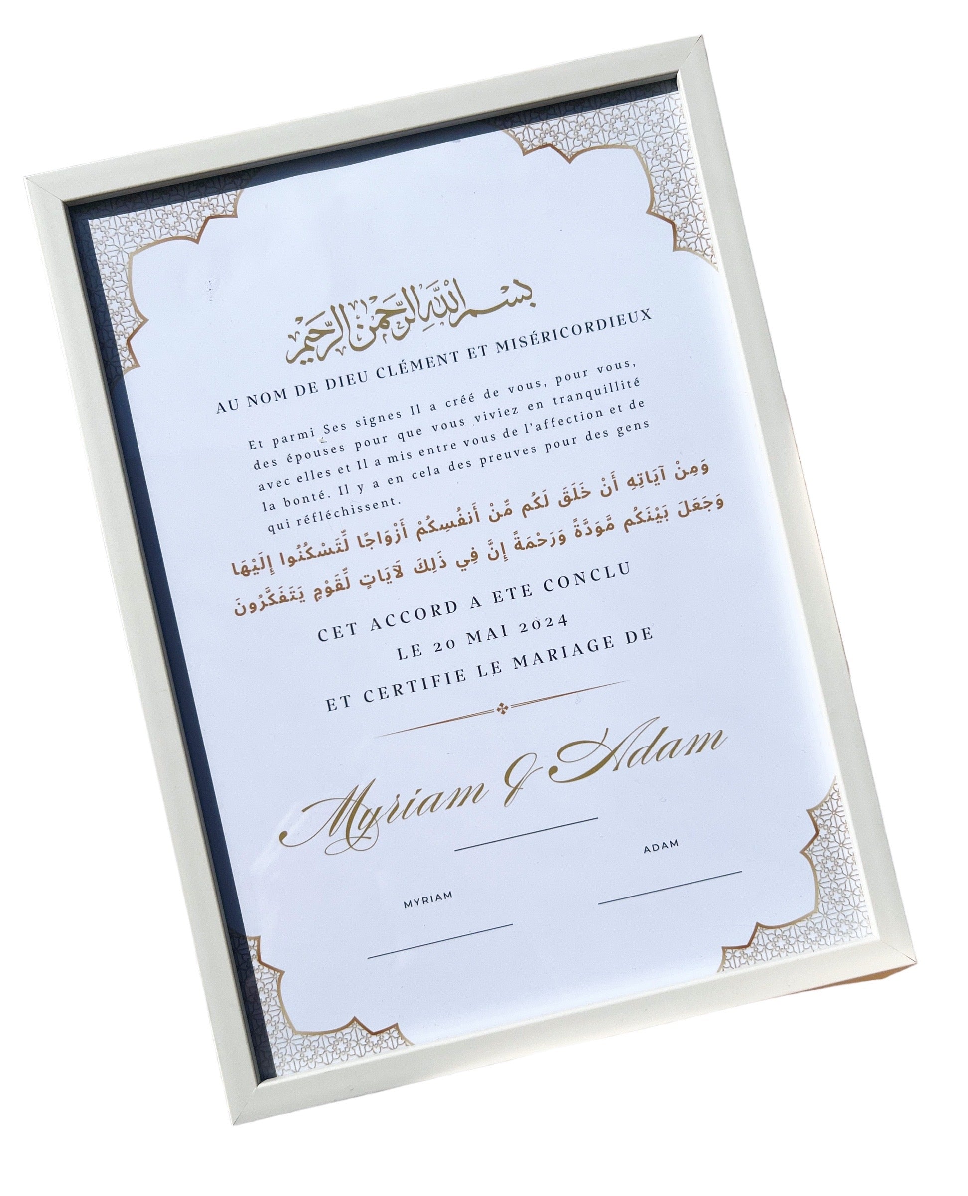 . Conçu avec soin, ce certificat apportera une touche personnelle et unique à votre cérémonie. Présentez-le fièrement en souvenir de votre union."