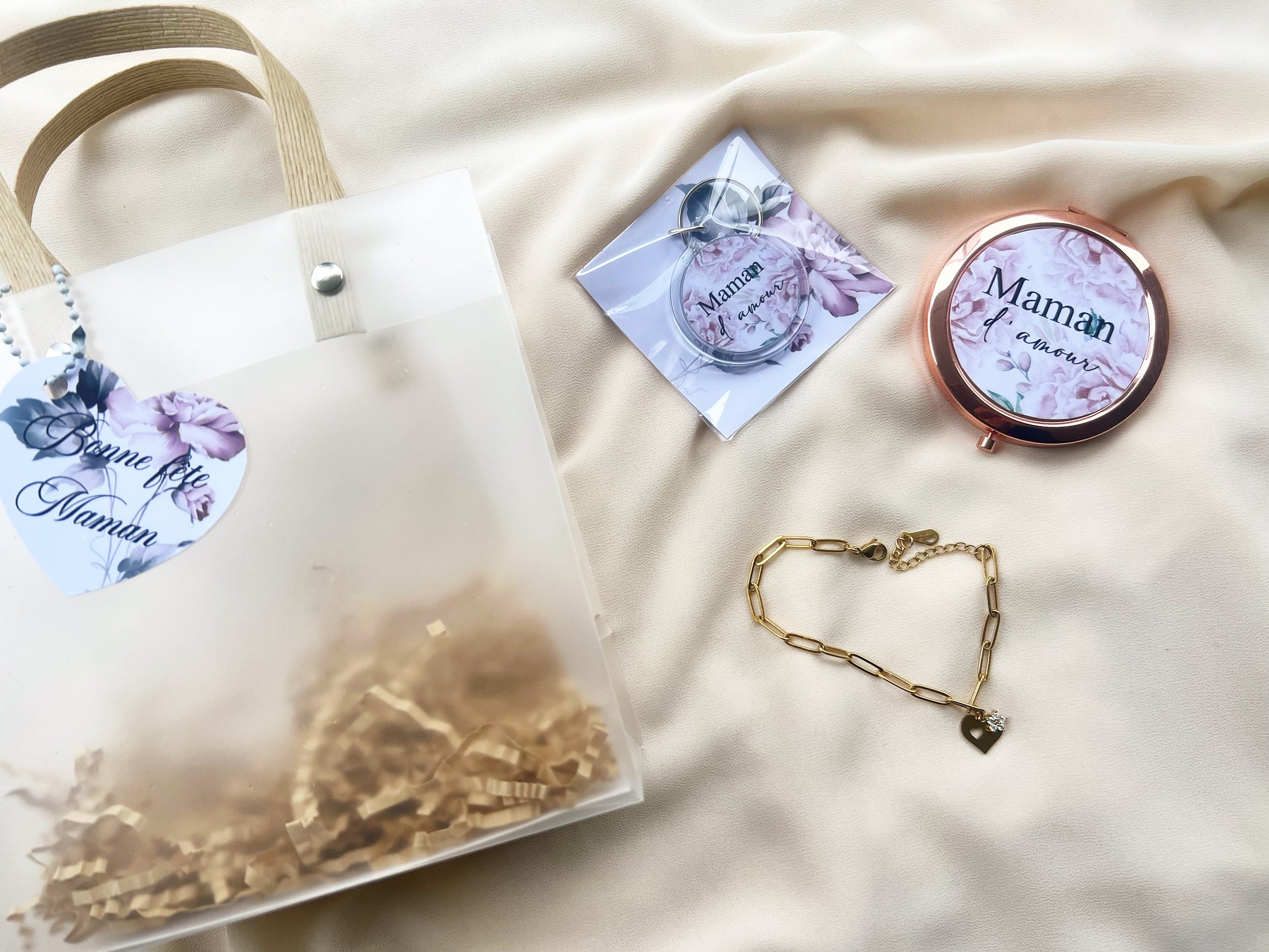 Offrez à votre mère un cadeau élégant avec le coffret fête des mères comprenant un miroir, des bijoux élégants et un porte clés. Un cadeau unique pour une mère spéciale.