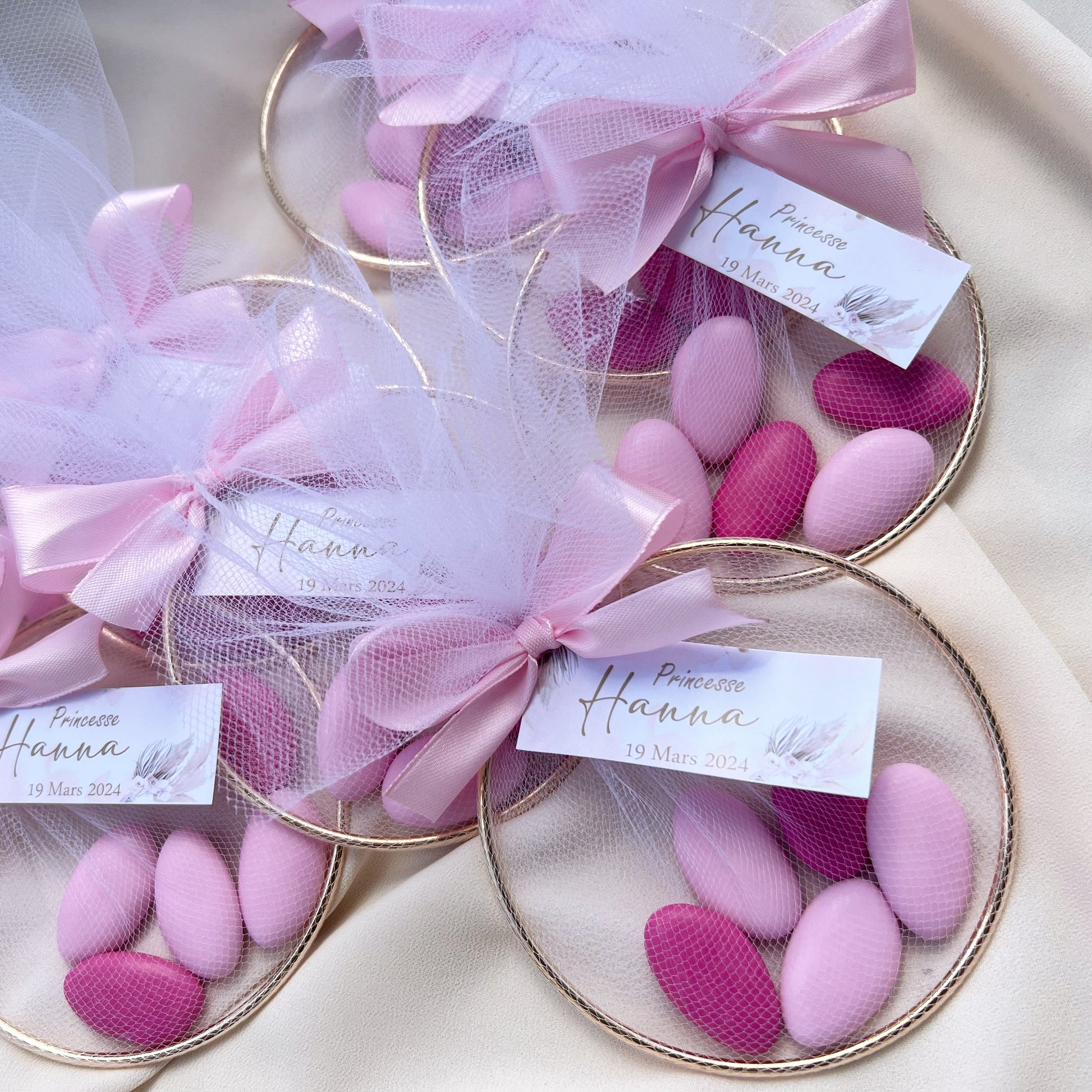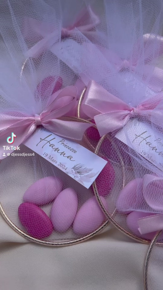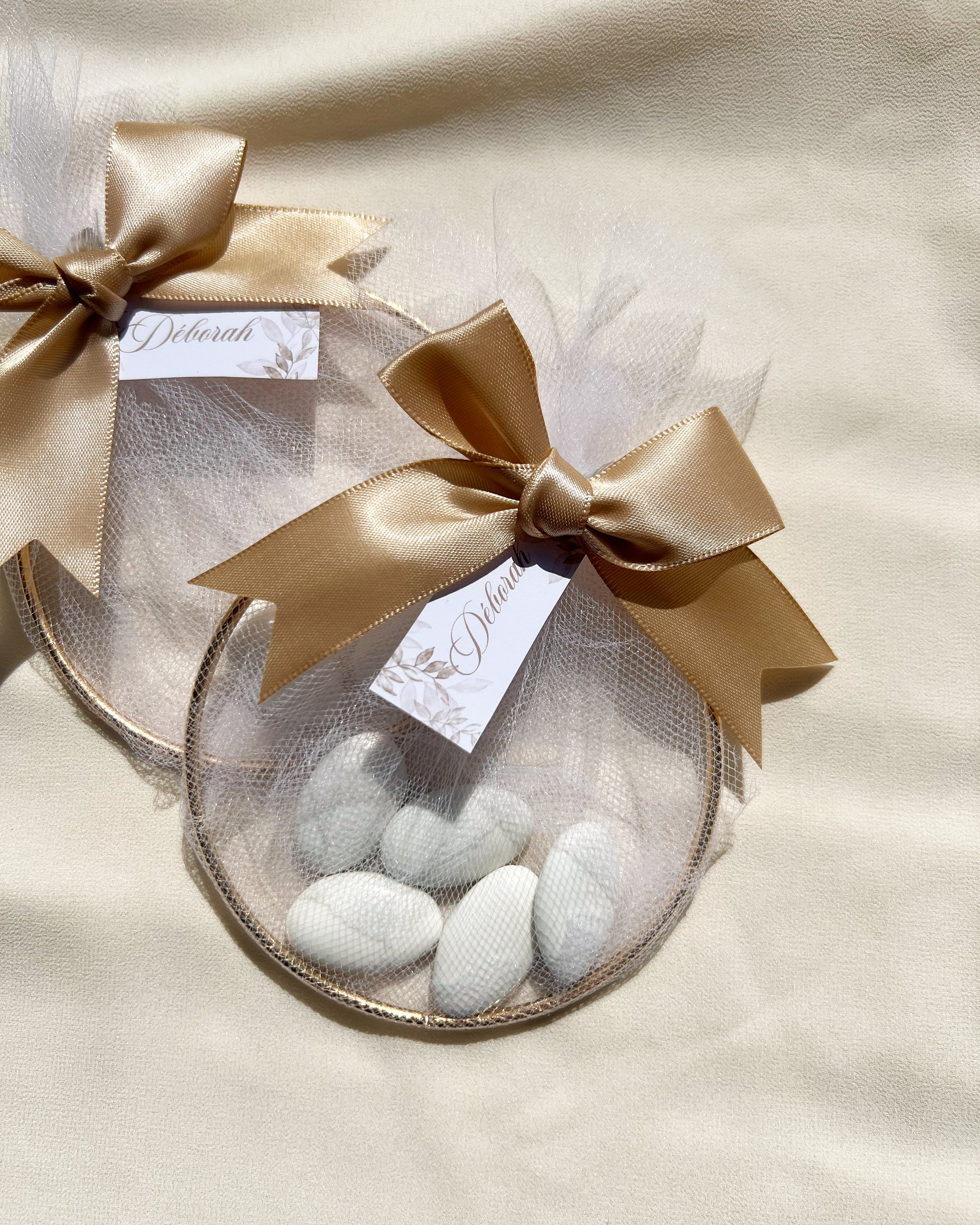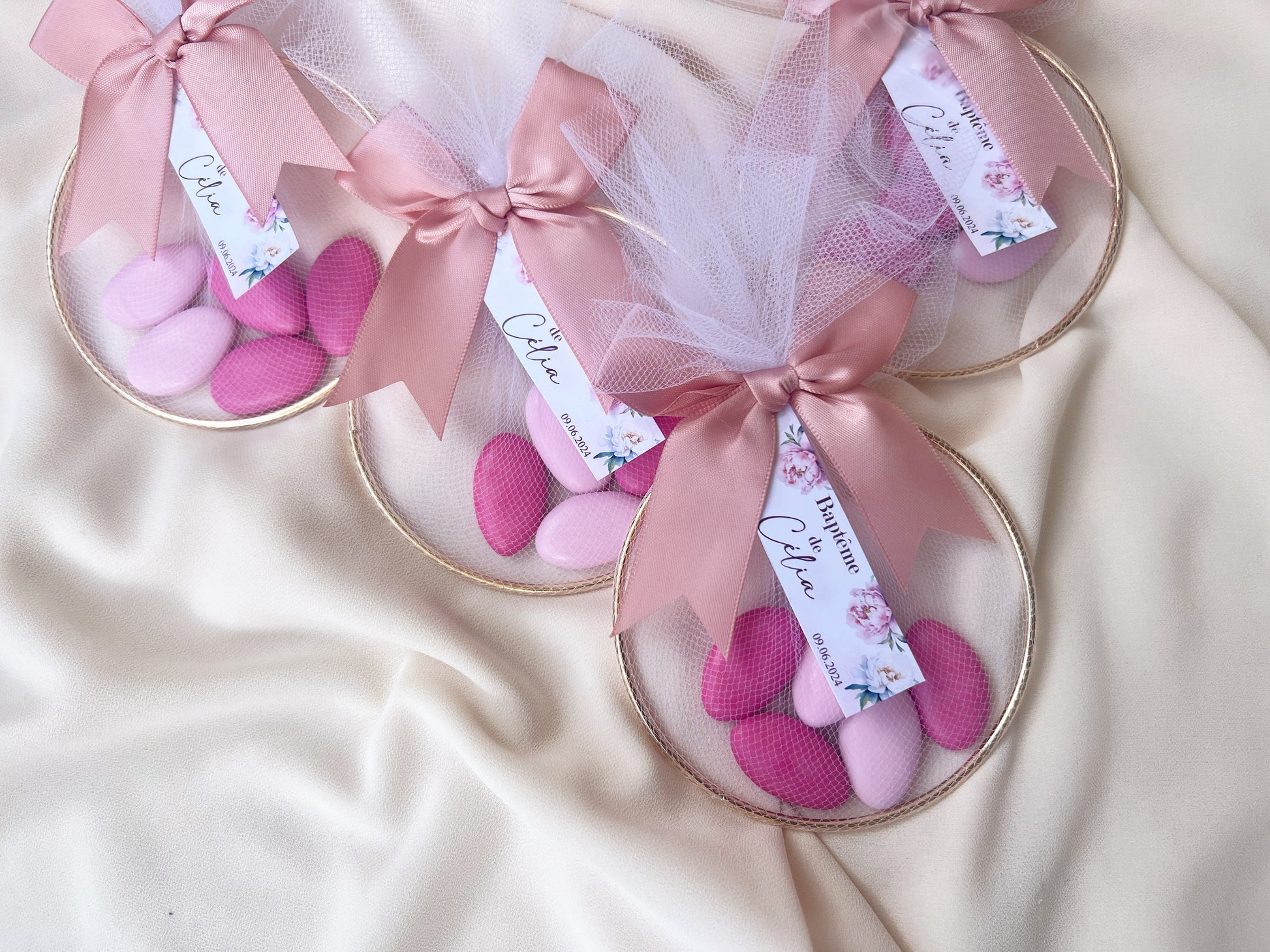Contenant avec dragées chocolat pour baptême, naissance, mariage