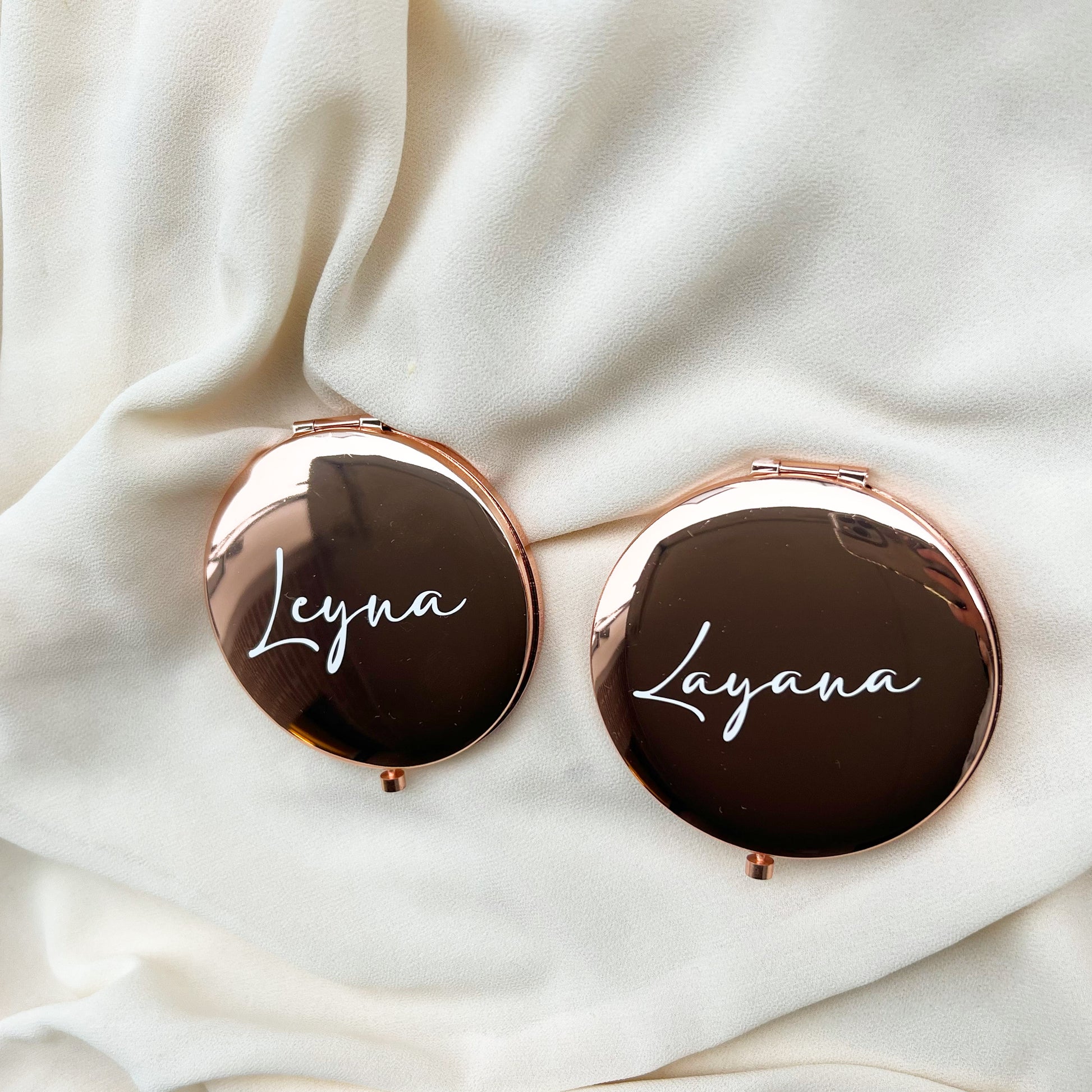 Découvrez la perfection dans un petit miroir de poche personnalisé. Personnalisez votre miroir avec votre nom ou une citation et profitez du luxe d'avoir un accessoire unique. Son design élégant et pratique en fait un cadeau parfait pour vous ou vos proches. Un objet de beauté qui vous accompagnera partout.